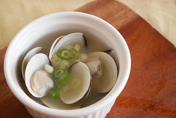 - 蛤蜊味噌湯:高湯(同玉子燒用)、蛤蜊數顆、白味噌少許、蔥花